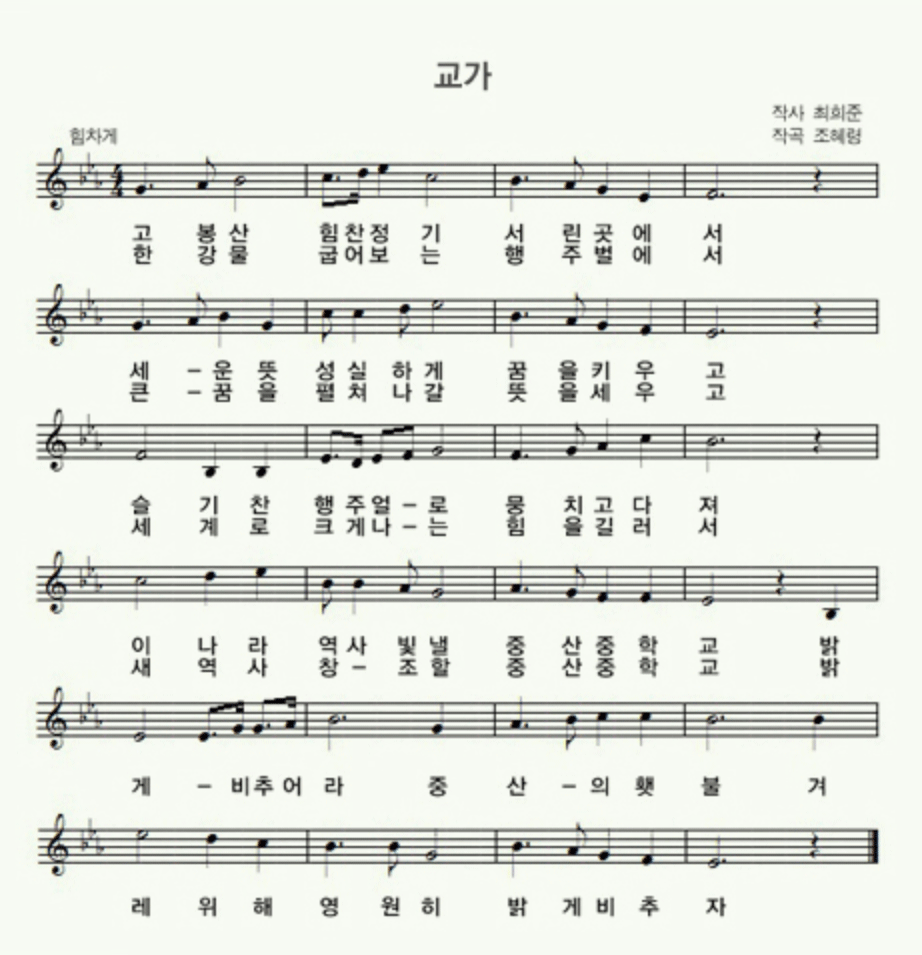 중산중학교 교가